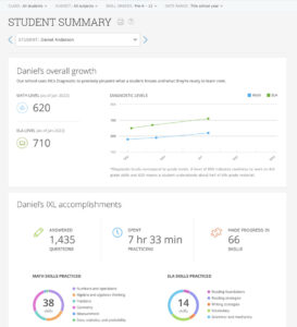 Student summary screenshot