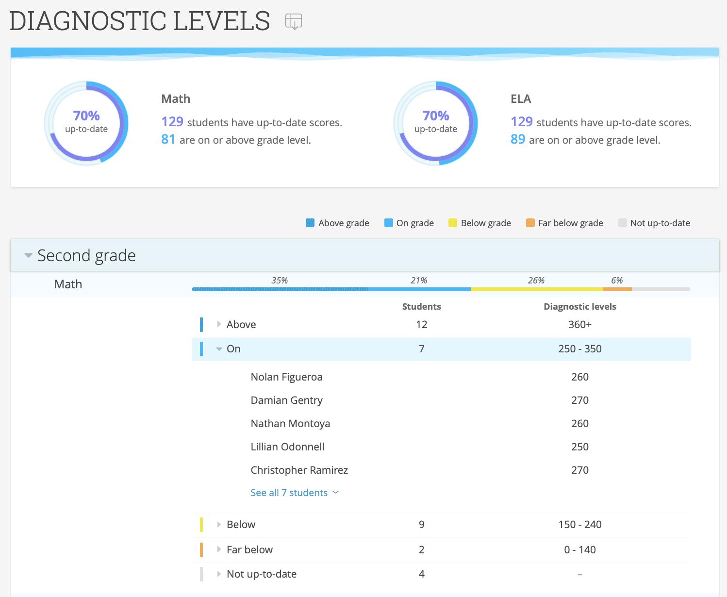 Diagnostic Levels Report—School Analytics