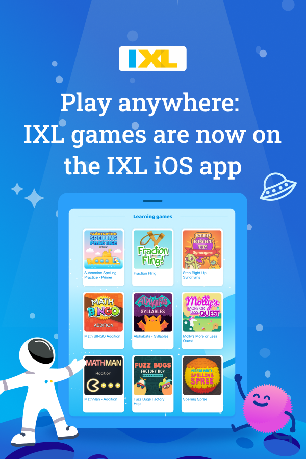Get ready to play anytime, anywhere! IXL games are now available on the IXL iOS app for iPhones and iPads. Students can jump into their favorite games at home, in class, or on the go.