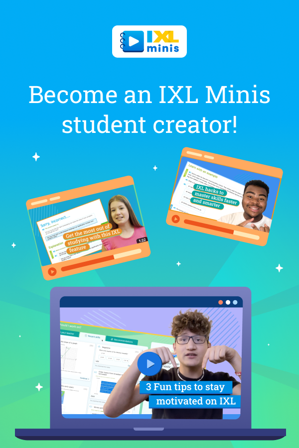 We’re thrilled to meet the next group of creators whose insights will help shape the future of IXL Minis. To get inspired, check out current videos at ixl.com/student-minis!