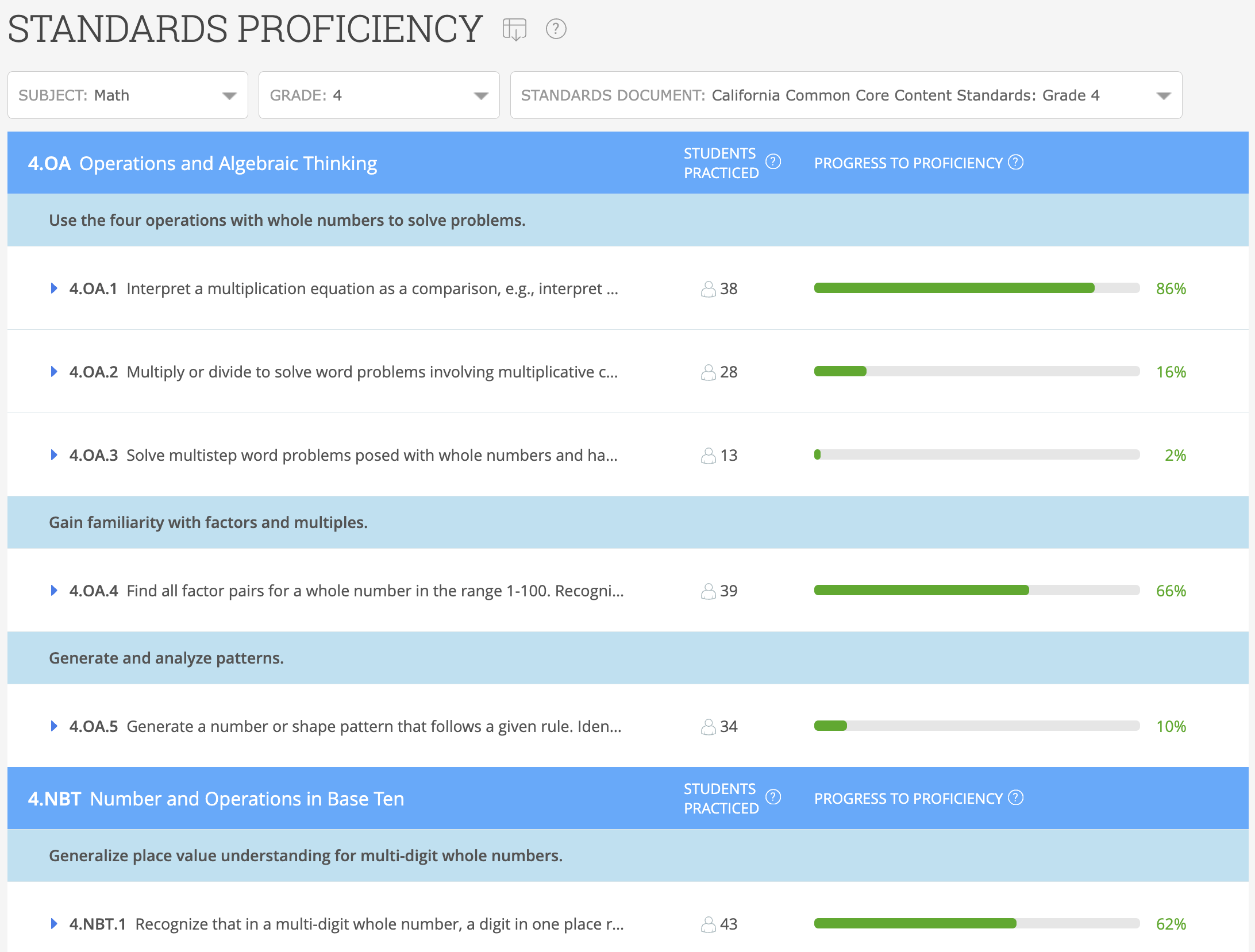 Administrators also have their very own standards proficiency reports where they can track school- and district-wide progress!