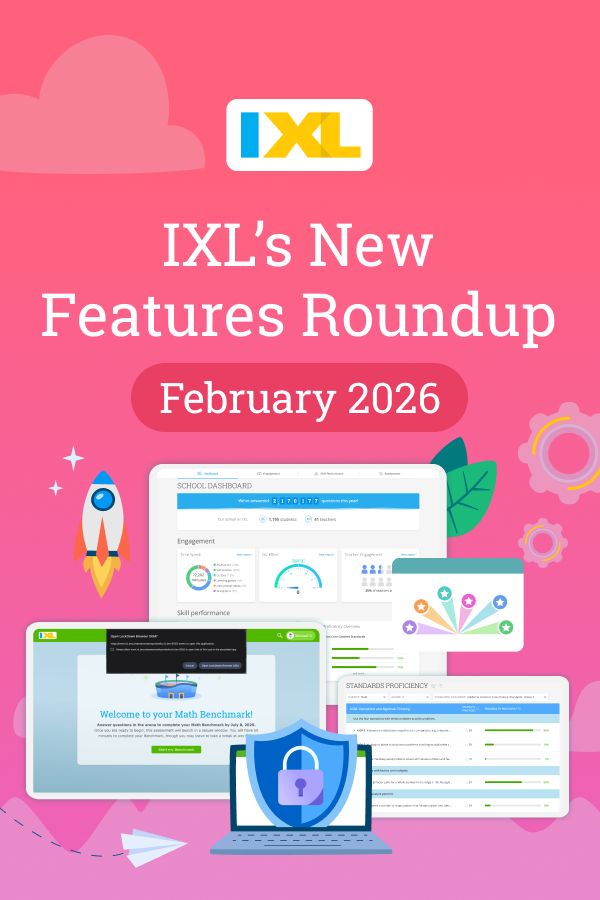 Keep reading below for a roundup of releases from February, including IXL SecureTest, the School Dashboard, a Standards Proficiency report for teachers, and more! To stay current with our latest updates, follow IXL on Facebook, Instagram, X, and LinkedIn.